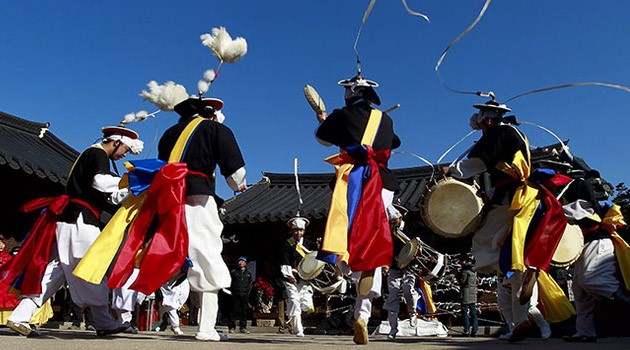 朝鲜半岛过春节的文化习俗,据说可以追溯到古新罗时代。韩国春节也在正月初一,韩国人称为“旧正”,传统上又称“元旦”、“元日”、“岁首”, 与我国春节相似。每到除夕,韩国人也是千方百计与家人团聚、共享天伦。春节一大早,举行“茶礼”,即在宗祠或住宅的厅里摆设年礼、岁酒、年糕片汤等,进行家庭祭祀,这个过程也叫做“祭礼”。然后全家一起吃“岁餐”,岁餐相当于我国大年三十的年夜饭。年饭后,收拾好饭桌,互相拜年,一家人围坐在一起吃年糕汤,韩国人认为吃了它就算长了一岁。接着还要“省墓”,即到先人的墓地,摆上祭品,进行祭奠。
